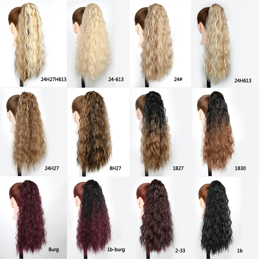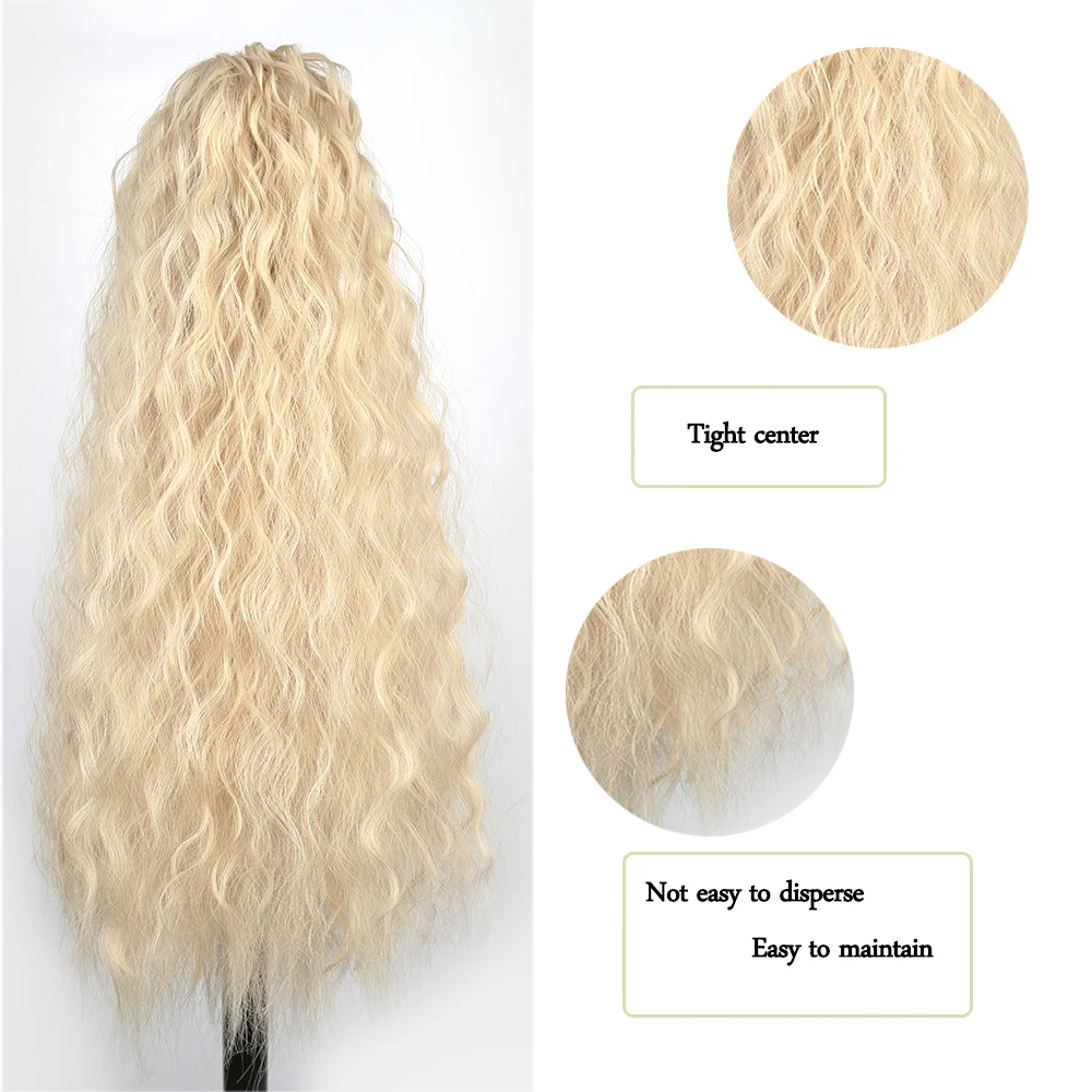 HOT Sale Corn Wavy Long Ponytail hair extension Magic Paste For Black White Women Synthetic fake hair 22 Inc
