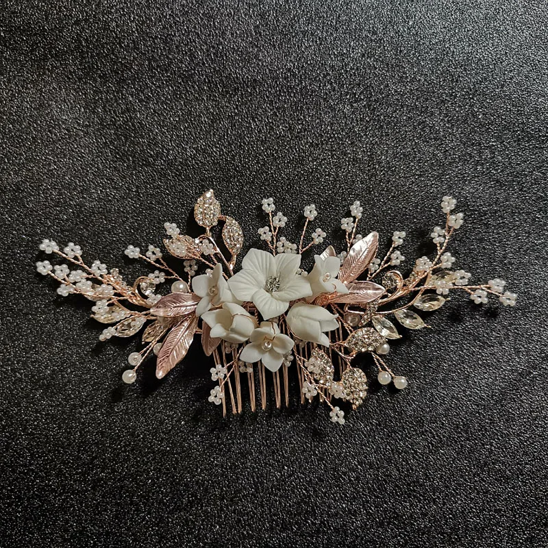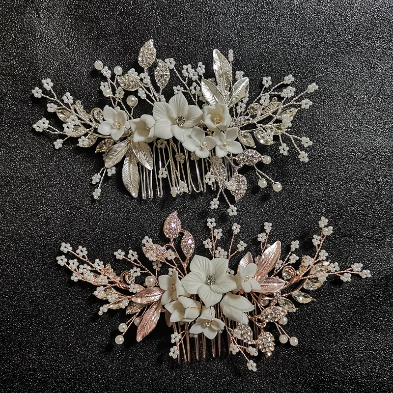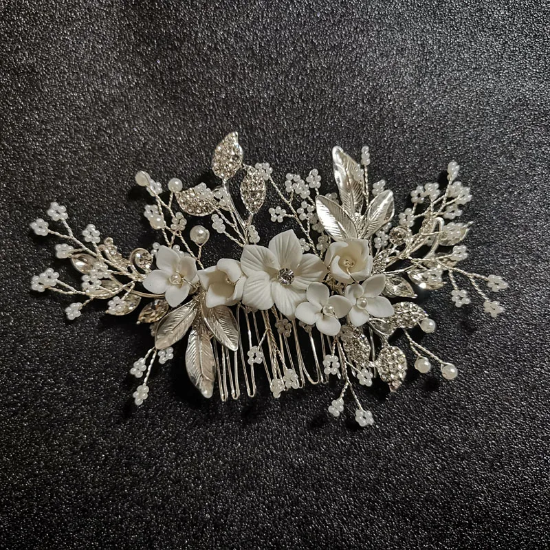 HIGH QUALITY SLBRIDAL Silver Clear Crystal Rhinestones Pearls Flower Wedding Jewelry Hair Comb Bridal Headpieces