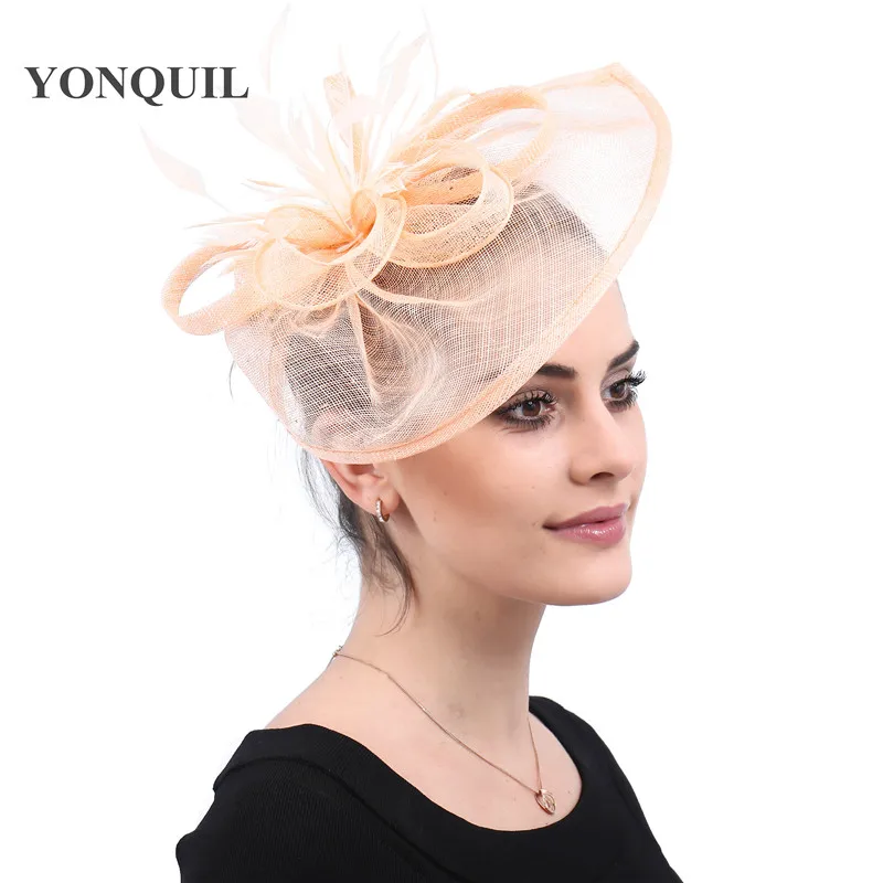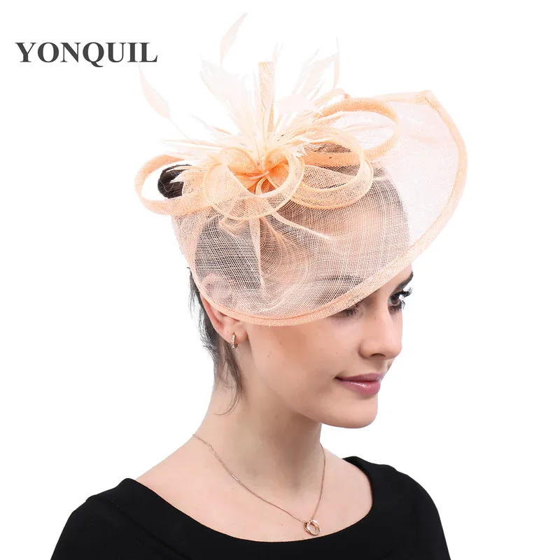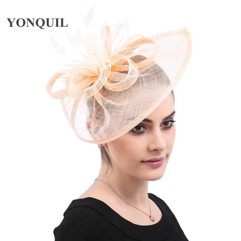 champagne kentucky sinamay fascinators with feather derby special occasions church hats wedding hai
