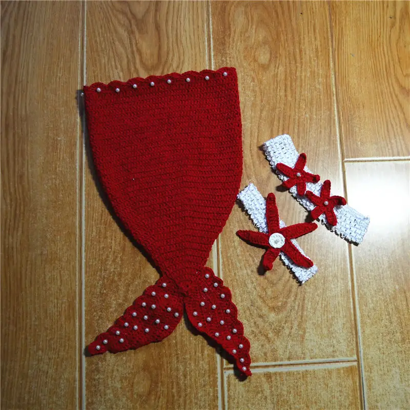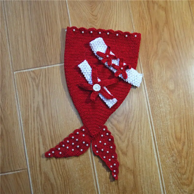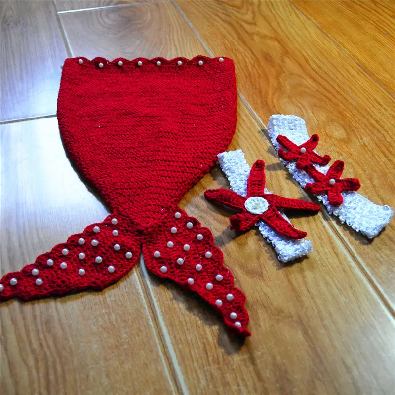 ORIGINAL QYFLYXUEQYFLYXUE-Baby photo props costumes baby climbs the mermaid including hair bands. Red other