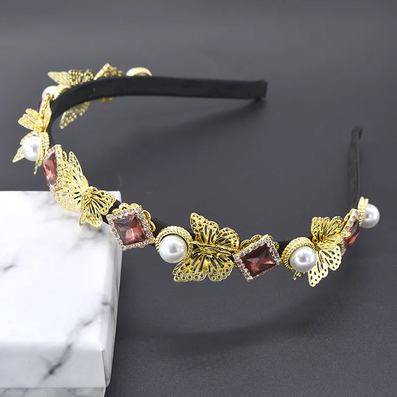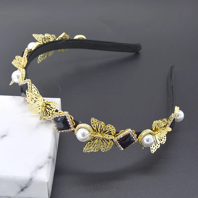 BEST SELLER 2019 Vintage Hollow Out Alloy Butterfly Hairband Women Baroque Pearl Rhinestone Headband Fashion La