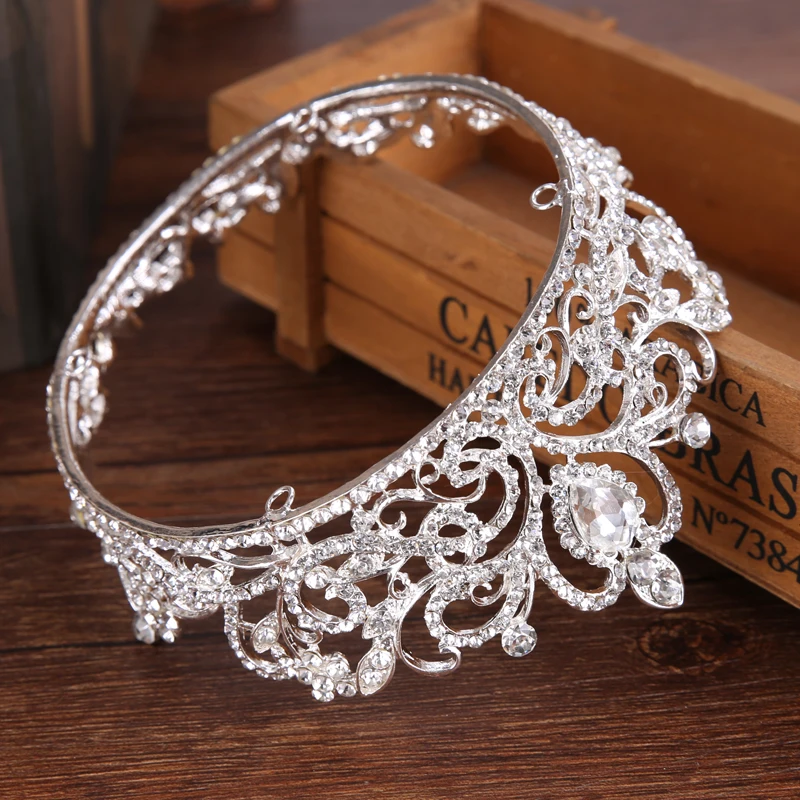 Vintage Silver Gold Round Baroque Crystal Tiara Queen Crown Hair Jewelry For Bridal Women Wedding H